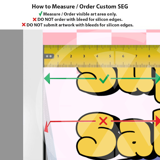 SEG or Silicon Edge Graphics can now be ordered at custom sizes to fit a customer’s existing hardware extrusions. The same 6 oz polyester fabric we use with our SEG hardware is available in variable height and width. The fabric is direct UV printed in full CMYK and sewn with 10mm silicone keder.